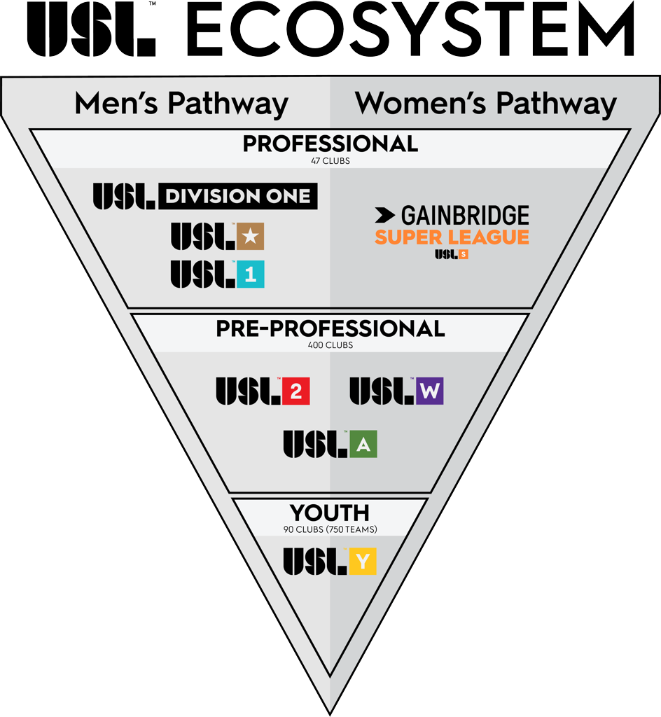 The United Soccer League provides a full development pathway for both men and women in one ecosystem.