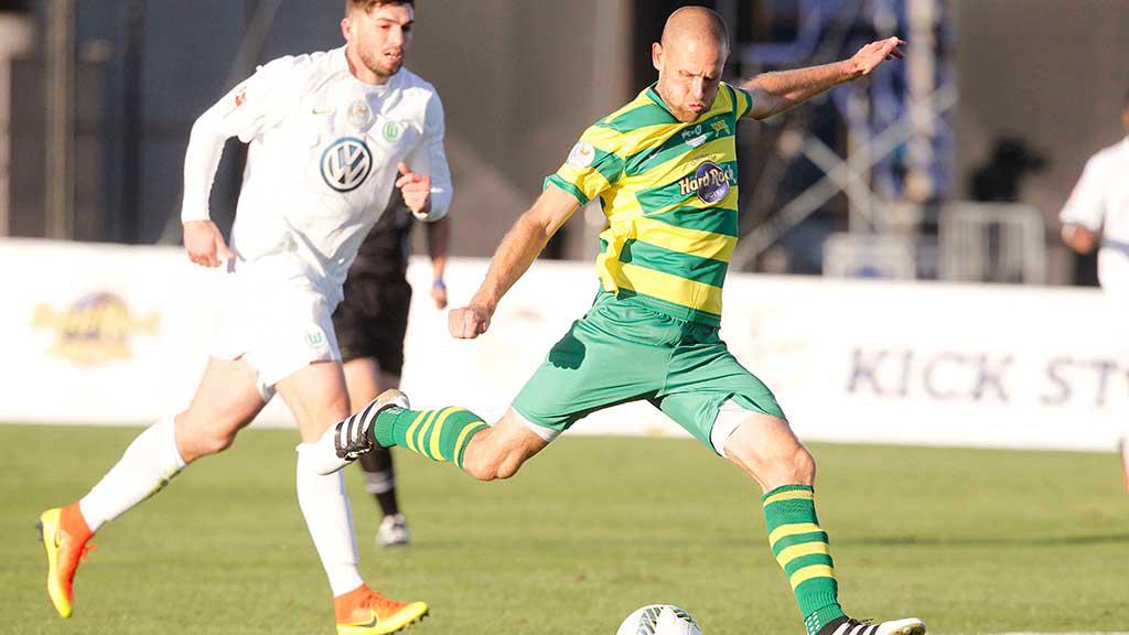 ST. PETERSBURG, Fla. – Robert Herrmann scored both goals as VfL Wolfsburg took a 2-0 victory against the Tampa Bay Rowdies on the opening day of the 2017 Florida Cup at Al Lang Field. Both goals came before the halftime break, as a spirited second half by the Rowdies was unable to create a comeback in the club’s first preseason contest of 2017.