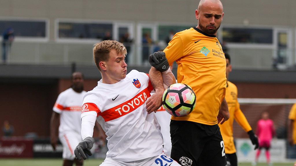 PITTSBURGH – FC Cincinnati’s Djiby scored his second goal in as many games as the second-year club earned its first win of the season, defeating the Pittsburgh Riverhounds 1-0 on Saturday at Highmark Stadium. It also marked the first FCC win for Head Coach Alan Koch, who spent last season leading Vancouver Whitecaps FC 2 to the 2016 USL Cup Playoffs. Cincinnati played up a man for more than half of the match after Andrew Wiedeman drew a second caution against Pittsburgh’s Gale Agbossoumonde late in the second half. The Riverhounds fall to 0-1-1 (1 point) while Cincinnati moves to 1-1-0 (3 points).