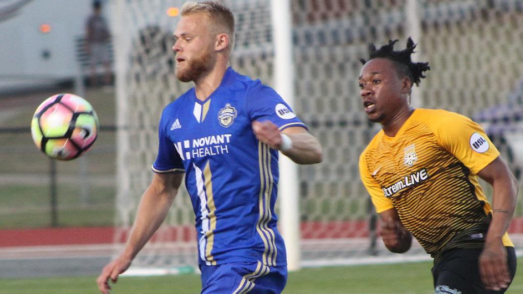 2. Charlotte was behind the 8-ball to open Saturday’s game with 2016 USL MVP finalist Enzo Martinez and Jun Marques Davidson serving one-game suspensions that carried over from last season. Head Coach Mike Jeffries needed his roster to step up. One of the early figures was Charlotte veteran Jorge Herrera, which probably comes as no surprise. Coming off a season in which his playing time was on occasion limited, Herrera had some aggressive sequences right out of the gate. He created one of the best opportunities in the 18th minute when he cut to his right foot and attempted to sneak the ball inside the left post, only to see Atlanta United FC loanee and Charleston goalkeeper Alex Tambakis turn it away and concede a corner.